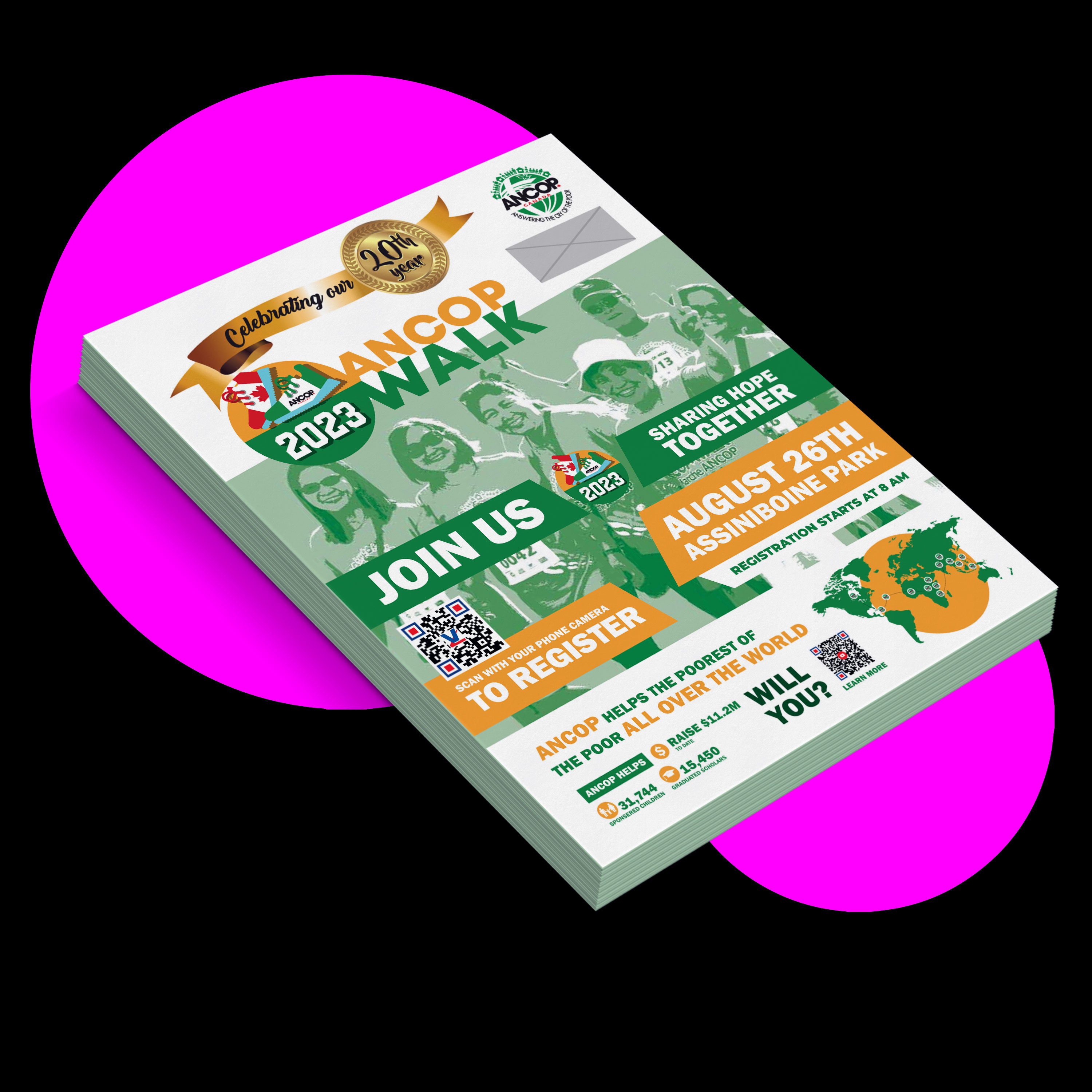 A series of print and digital ads to promote the 2023 Ancop Charity Walk.