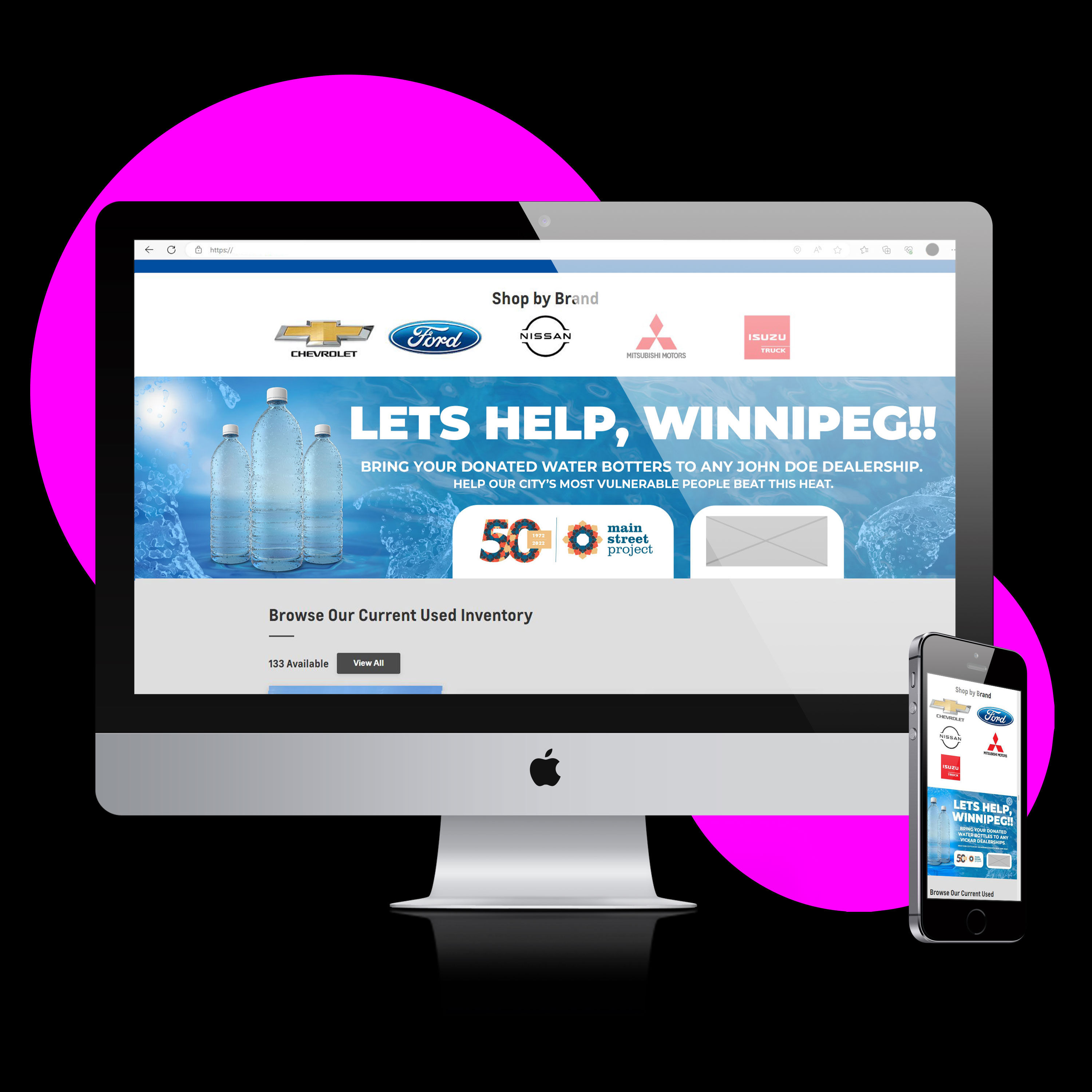 A series of digital and print ads asking for water bottle donations for Winnipeg’s Main Street Project.
