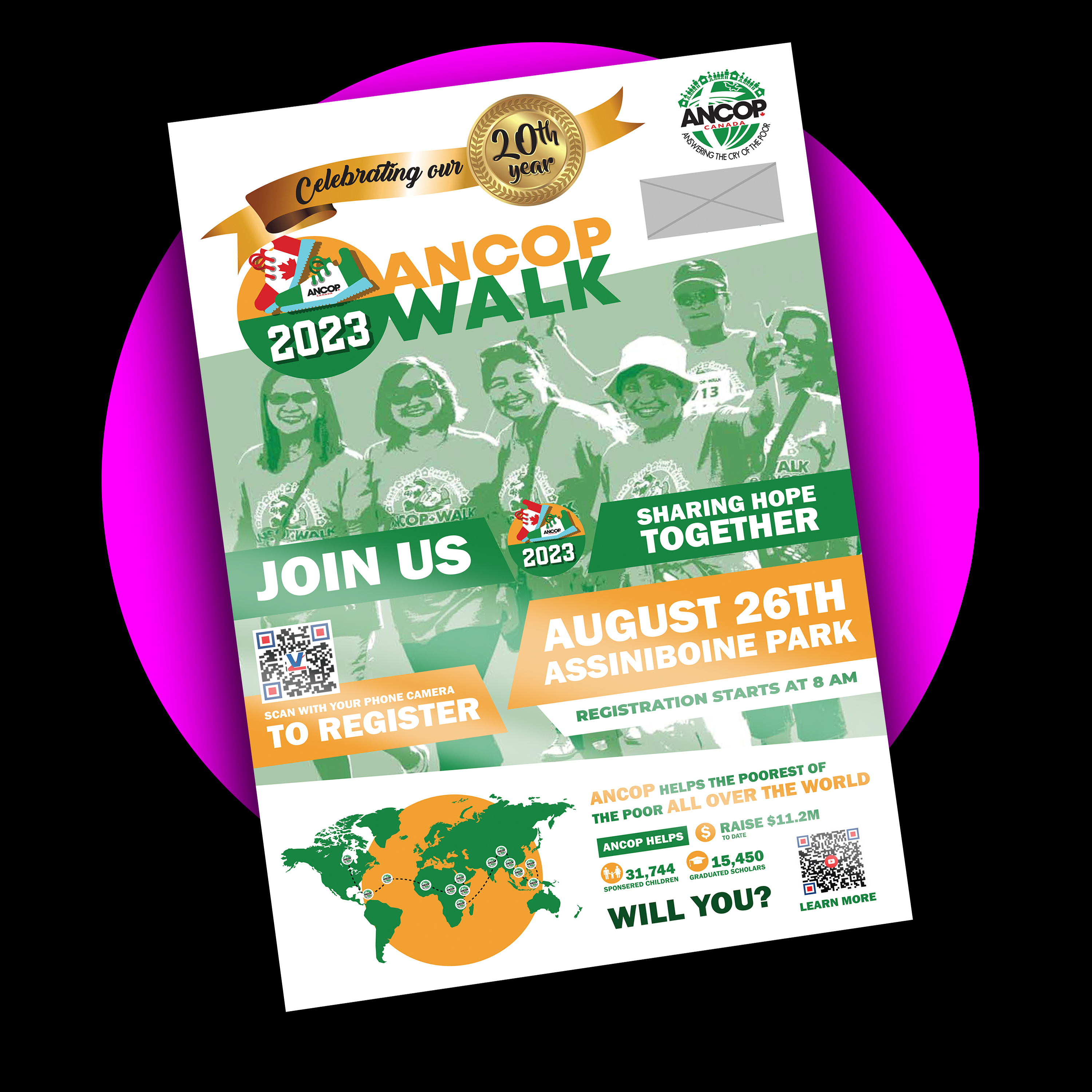 A series of print and digital ads to promote the 2023 Ancop Charity Walk.