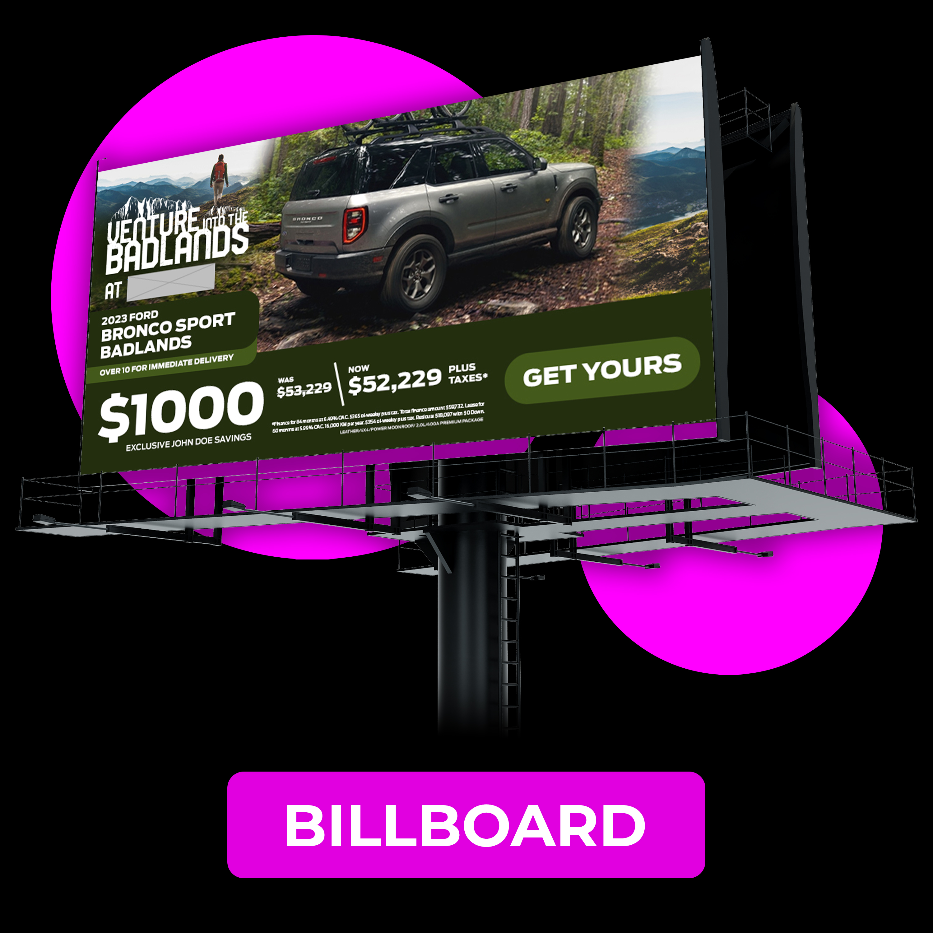 This ad campaign captured the attention of potential buyers for the sales of the new 2023 Ford Bronco Sport Badlands models. The primary objective of this campaign was to highlight the vehicle’s impressive off-road capabilities while emphasizing its enticingly low price, effectively capturing attention and driving sales. These compelling ads have been strategically featured as website sliders, billboards, and social media promotions.